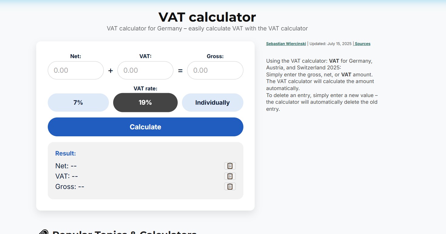 3. Berechnen: Ad-hoc mit einem verlässlichen Tool wie dem Mehrwertsteuerrechner.